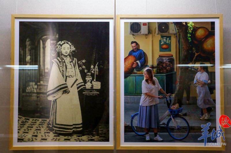 值得一提的是,这次新春拍摄的图片与广州过往的历史留影产生奇妙对照,谓之“对镜”。比如,在19世纪的广州五层楼,黑白照片里是斑驳的城墙;21世纪的今天,五层楼古炮台上木棉盛开,引来孩童嬉戏。此外,还有19世纪广州仕女与当代年轻女性、20世纪越秀公园与现在的宝墨园,等等。