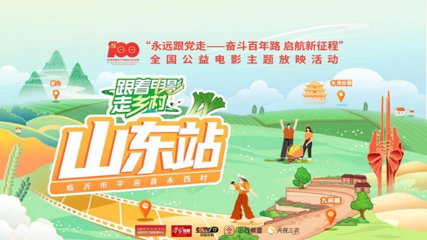 近日,由中宣部电影数字节目管理中心、中央广播电视总台农业农村节目中心、学习强国学习平台、山东省委宣传部、山东省电影局、临沂市委宣传部、临沂市文旅局、平邑县委县政府等联合发起的“永远跟党走——奋斗百年路 启航新征程”全国公益电影主题放映活动(山东站)在山东临沂平邑县永西村正式启动,CCTV-17大型融媒体行动《跟着电影走乡村》也来到以果品罐头与金银花产业闻名全国的平邑县,带网友打卡沂蒙山区海拔1156米、被誉为“岱宗之亚”的龟蒙山,探访美丽的“槐文化之乡”永西村、“红色旅游胜地”九间棚村。在秀美的自然风光和日新月异的农村生活变化中,一个昔日落后村到如今“网红”示范村的蝶变故事,正向广大网友娓娓道来。
