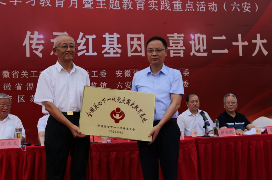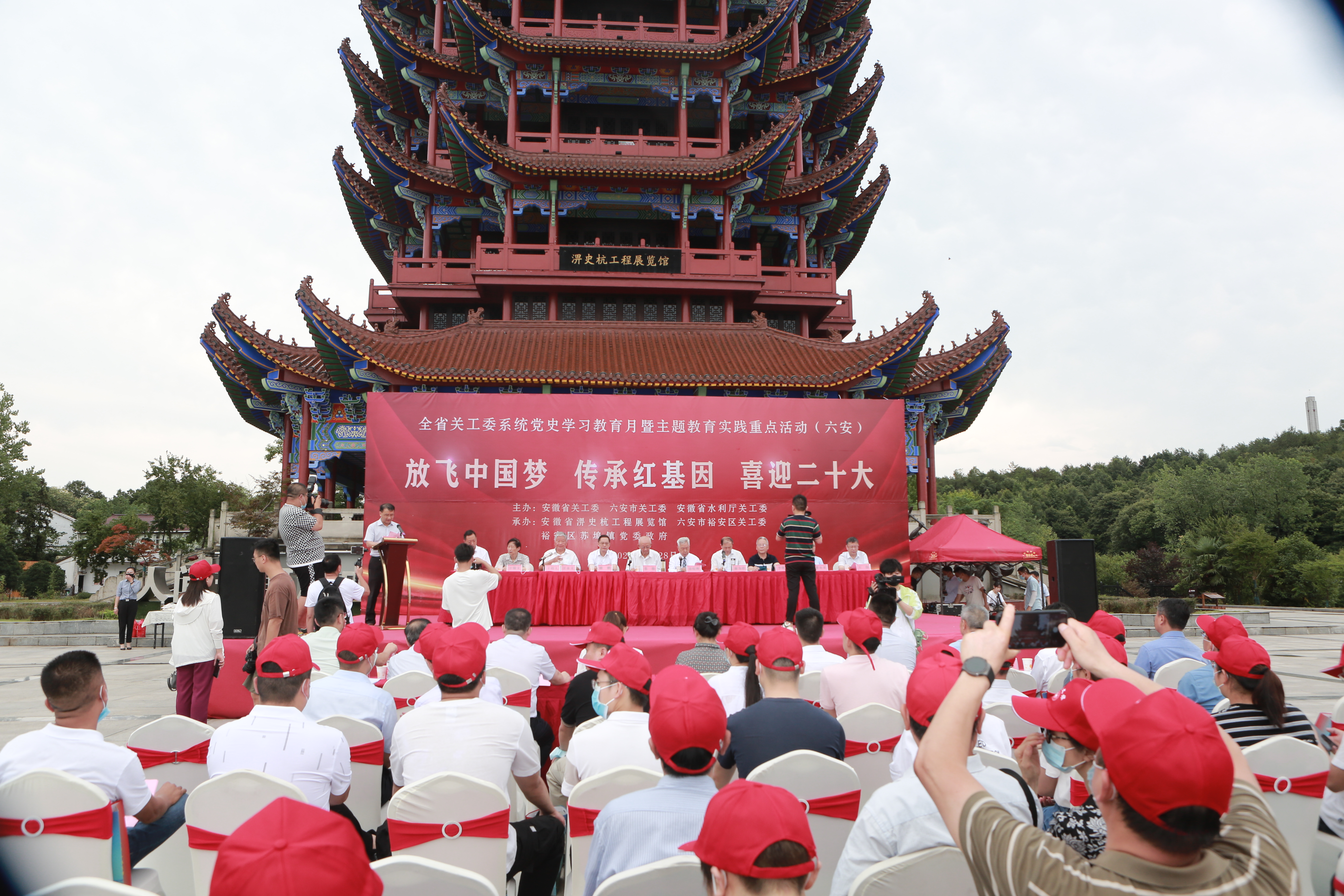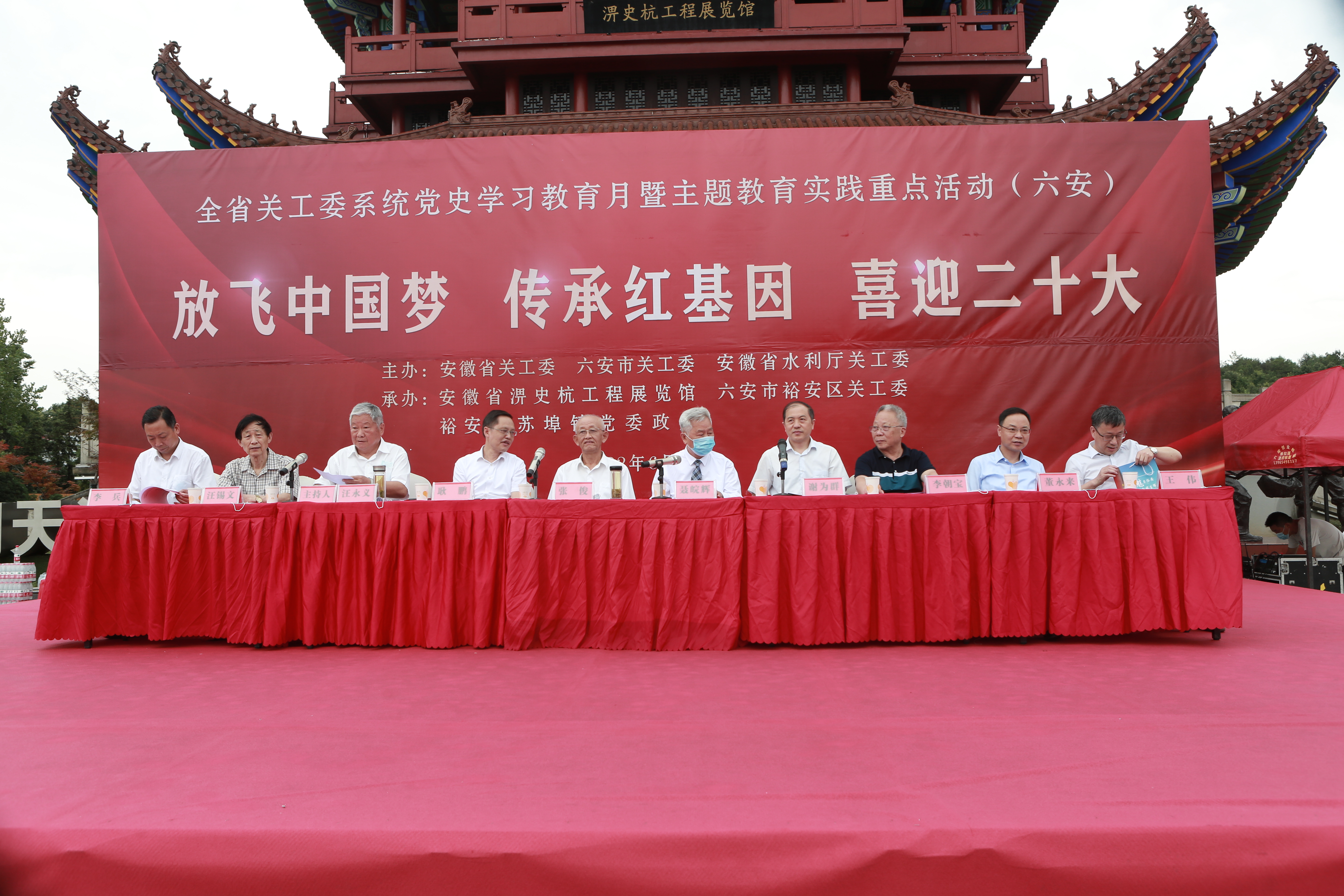 6月28日上午,全省关工委系统党史学习教育月暨“放飞中国梦、传承红基因、喜迎二十大”主题教育实践重点活动(皖中片区)暨“全国关心下一代党史国史教育基地”授牌仪式,在美丽的横排头淠史杭工程展览馆成功举办。省关工委主任张俊出席活动并为展览馆颁授“全国关心下一代党史国史教育基地”牌;省关工委常务副主任聂皖辉,省水利厅一级巡视员谢为群,六安市委常委、组织部部长耿鹏出席并分别讲话,六安市关工委主任汪永义主持。省直属机关、六安市及裕安区关工委相关同志参加了活动,淠史杭工程展览馆负责同志介绍展览馆开展党史教育情况,六安市裕安区苏埠镇八一希望小学青年职工代表发言。
