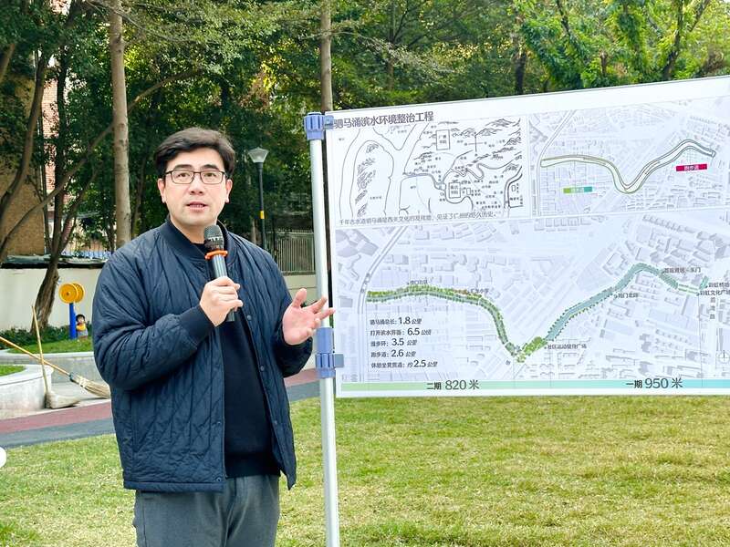 杜凡介绍驷马涌滨水环境整治工程。李惠娴/摄