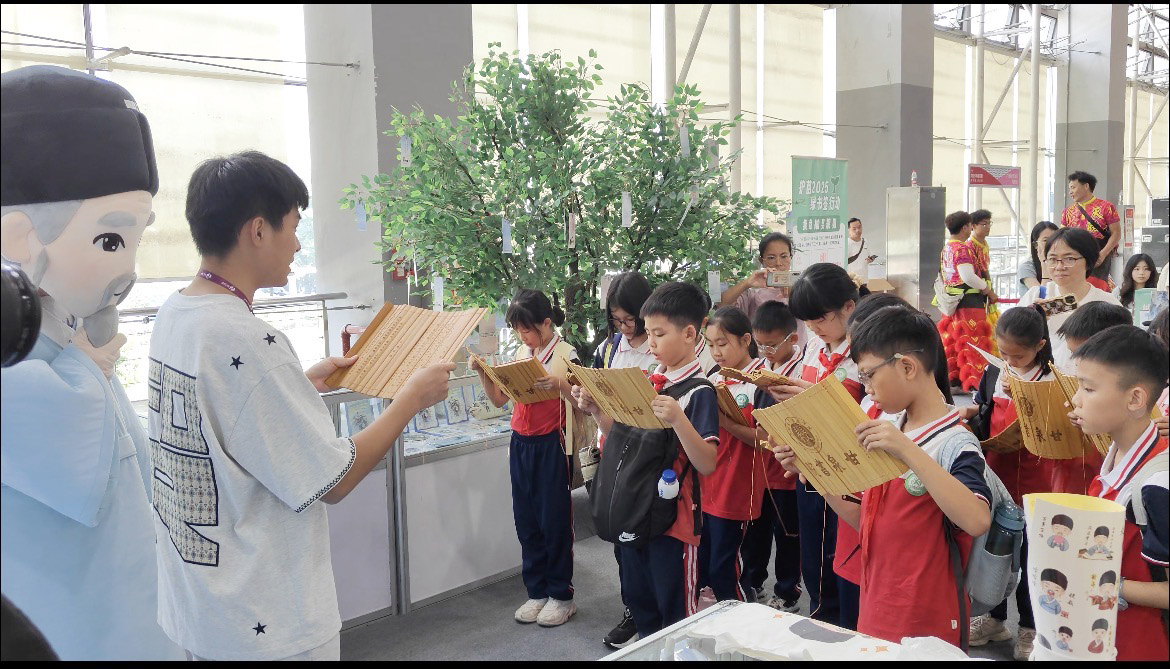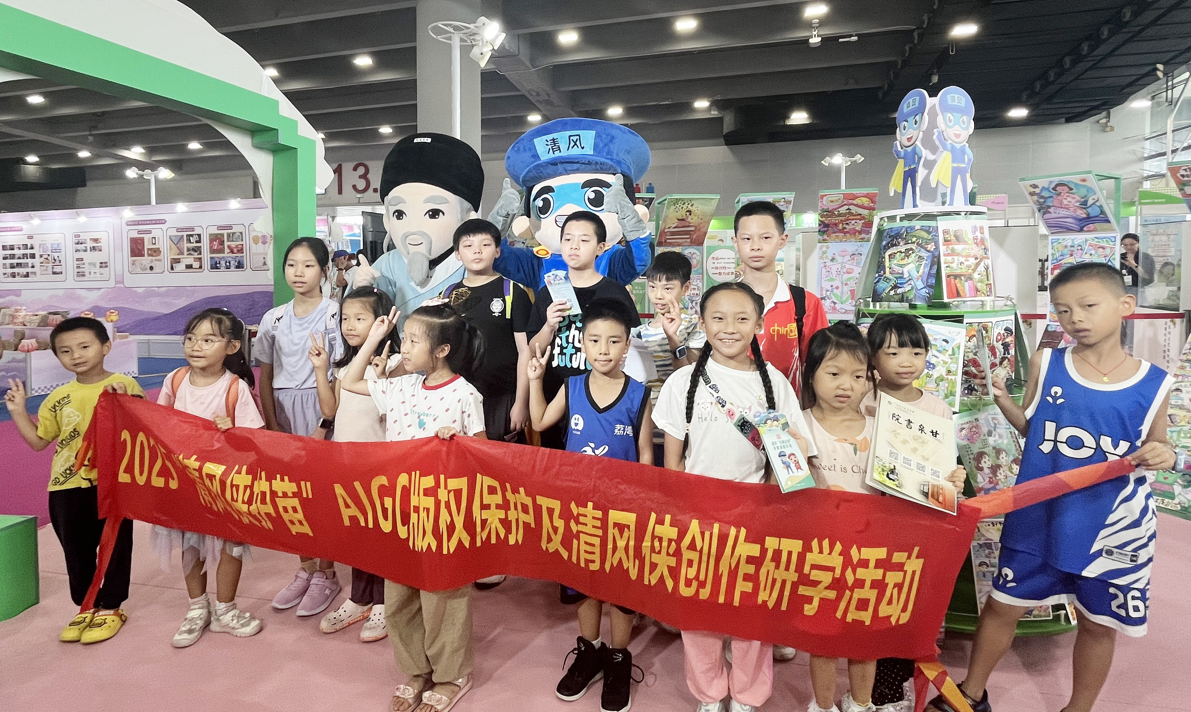 8月17日,广州“清风侠研学行”之悦读童行、“羊城书展里的版权故事”研学团、乡村未成年人文明培育“七彩行动”之“羊城书驿阅溯千年”文化阅读研学团来到羊城书展“清风侠•护苗”绿书签展区沉浸式体验学习。学员们积极参与AI创作、头脑风暴、趣味游戏、非遗体验等系列特色活动,学习“扫黄打非”、版权保护的知识,深入理解“清风侠•护苗”文化内涵。