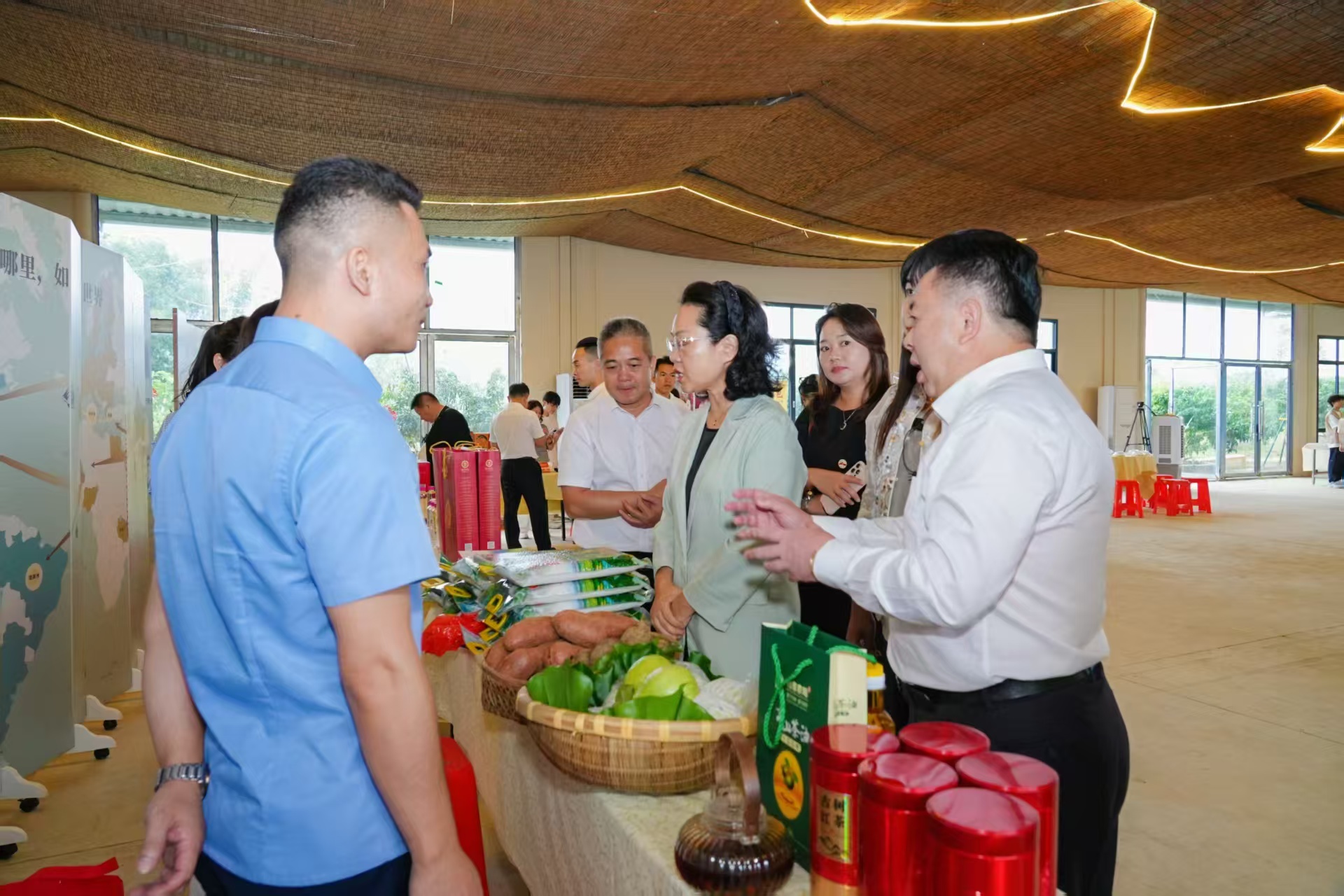 活动伊始,侨企特色产品与增城丝苗米、松茸干,枇杷醋等特色农产品,澳海老土酱油、新塘鱼包、畲族织品等非遗产品轮番展示,畲族歌曲震撼展演,成为展现增城乡村魅力的“窗口”。琳琅满目的优质农产品,不仅是增城青山绿水孕育的生态成果,更承载着当地乡村产业升级的无限潜力;匠心独具的非遗作品,每一件都凝结着手艺人的坚守与创新,无声传递着增城千年文脉的深厚底蕴。现场嘉宾纷纷驻足观赏,或俯身细致询问产品的种植工艺、非遗技艺的传承故事,或与参展代表深入洽谈合作方向。在交流互动中,“增城好物”成为了连接侨界力量与乡村发展的纽带,不仅让更多人看见增城乡村的价值与活力,更为侨力精准赋能乡村产业、文化振兴搭建了高效桥梁。