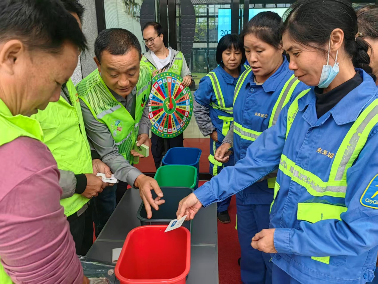 与此同时,在新垦围垦陈列馆开设宣传摊位,向环卫工人进行相关生活垃圾分类知识宣传并派发暖心慰问礼品。