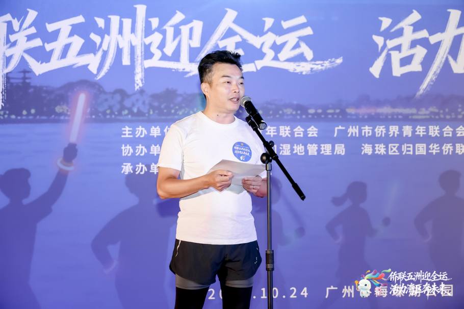 启动仪式上,广东省侨联党组成员、副主席兼秘书长、广东侨界青年联合会主席陈农灏在致辞中表示,在广东省侨联的领导下,广东侨青联始终致力于凝聚侨青力量,发挥其视野开阔、融通中外的优势,积极投身粤港澳大湾区建设。他指出,本次荧光夜跑正是侨界青年支持全运、祝福湾区的最真挚表达,希望通过侨青的网络将全运热情与湾区活力传向世界。