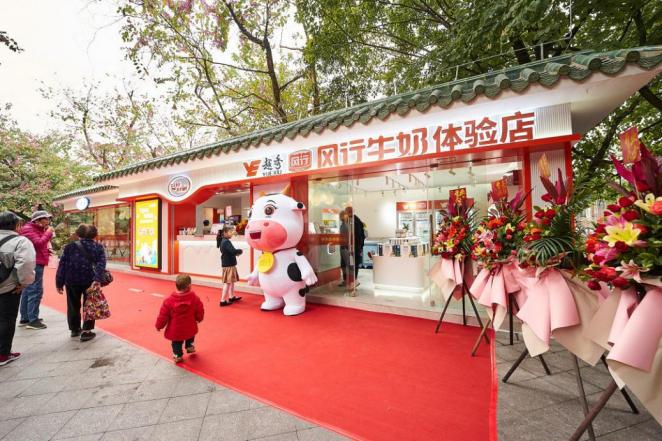 在风行牛奶越秀公园体验店,橙白主调的明快设计搭配岭南特色满洲窗元素,依湖而建的门店将自然美景与新鲜乳品完美融合,打造“打卡+消费”的沉浸式体验。