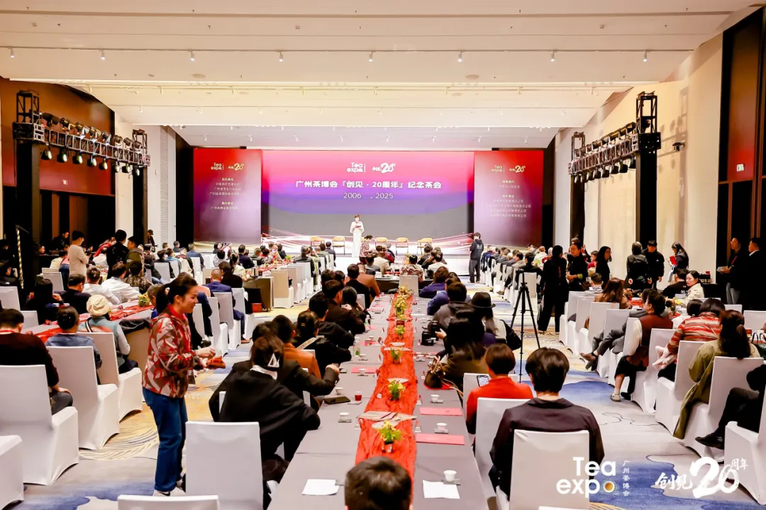 2025年11月20日,2025广州茶博会盛大开幕。开幕日当天下午,在广州广交会堂二楼第一会议室,广州茶博会“创见20周年”纪念茶会隆重举行。纪念茶会分为“源起”,“复兴”,“赓续”三个篇章进行。