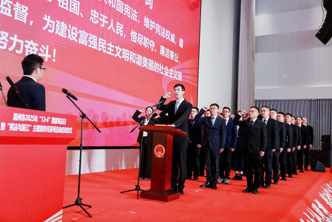 12月1日下午,温州市2025年“12•4”国家宪法日暨“宪法与浙江”主题宣传月系列活动启动仪式在温州医科大学举行。这是温州首次将市级宪法日主场活动“搬”进高校校园。这份面向高校青年的用心安排,正是城市深耕高校普法主阵地的生动体现。