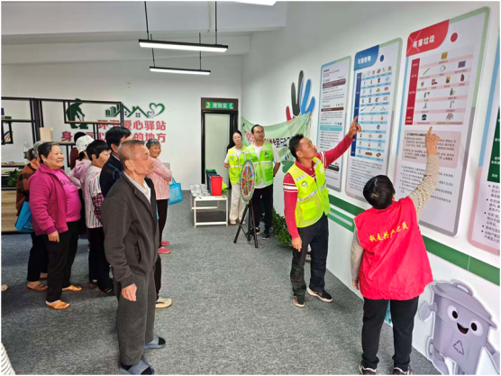 为让垃圾分类知识更易被接受、更深入人心,活动还设置了互动体验环节。垃圾分类大转盘、垃圾投放道具游戏等趣味活动吸引了众多群众积极参与。在垃圾分类大转盘游戏中,参与者转动转盘,根据指针指向的垃圾名称,快速判断其所属类别并准确作答;垃圾投放道具游戏则模拟真实投放场景,让大家亲手将不同类型的垃圾道具投放到对应的分类垃圾桶中。通过“寓教于乐”的方式,群众在轻松愉快的氛围中巩固了垃圾分类知识,提升了实际操作能力,现场欢声笑语不断,互动热情高涨。