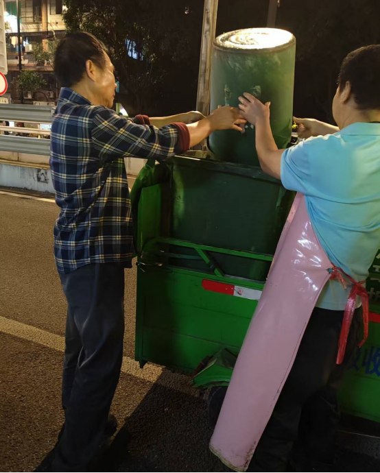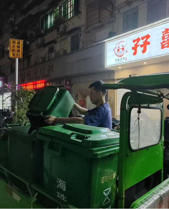 这些小规模收运力量,夜间专门巡回收运沿街餐饮商户、人流密集路段产生的厨余垃圾。其灵活性强、作业时间弹性大的特点,更能适应商铺经营节奏,实现上门精准对接、及时清运,有效避免了厨余垃圾因滞留而产生的环境卫生问题,也从收运环节强化了对商户分类投放的督促与引导。