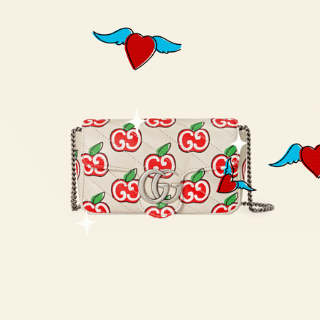 “Apple of the eye”被称为珍视的人,GUCCI带来全新双G红苹果图案,清纯羞涩或是大胆热烈,用苹果来表达爱吧!
