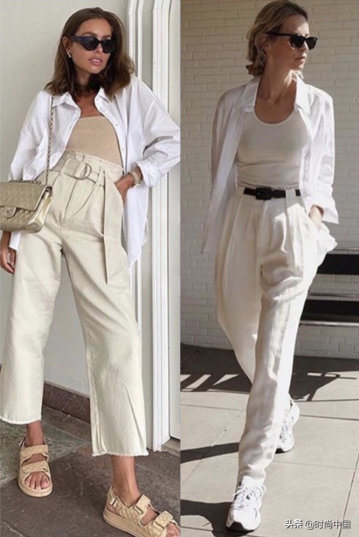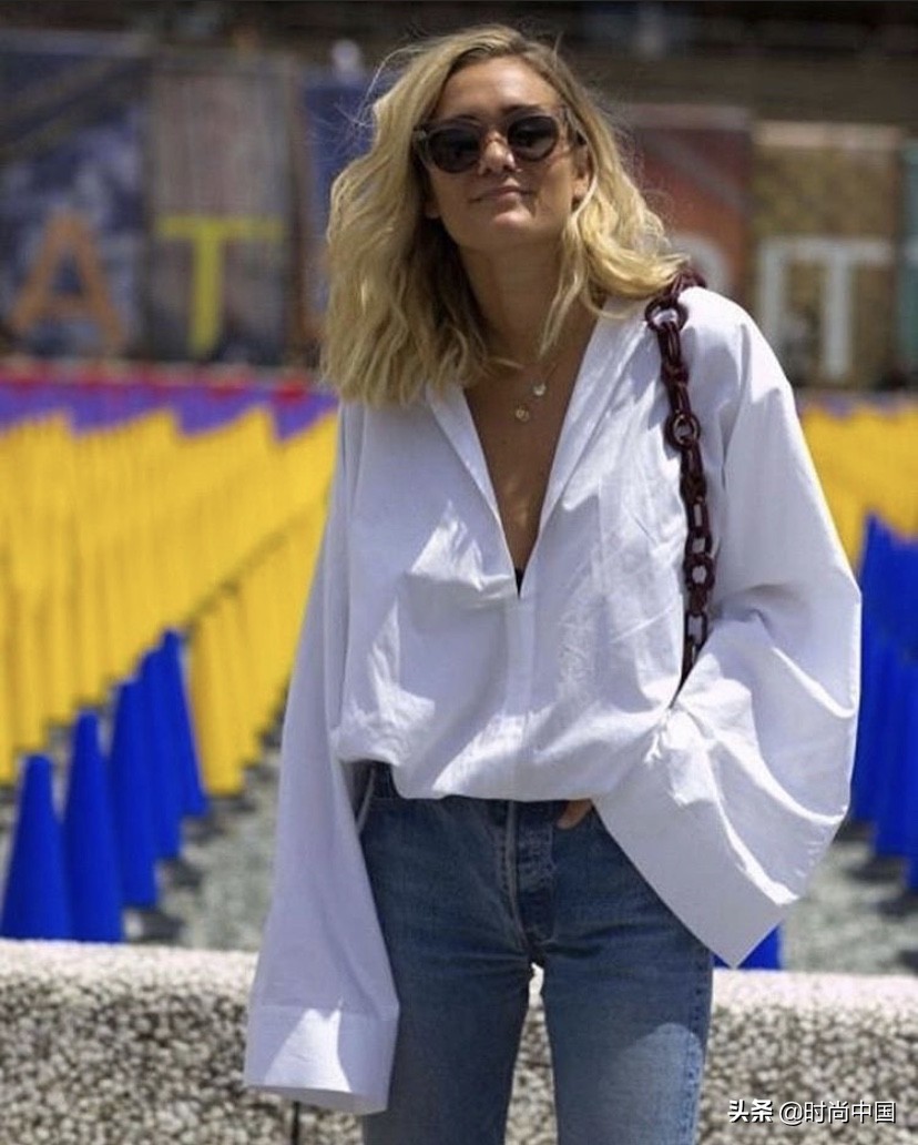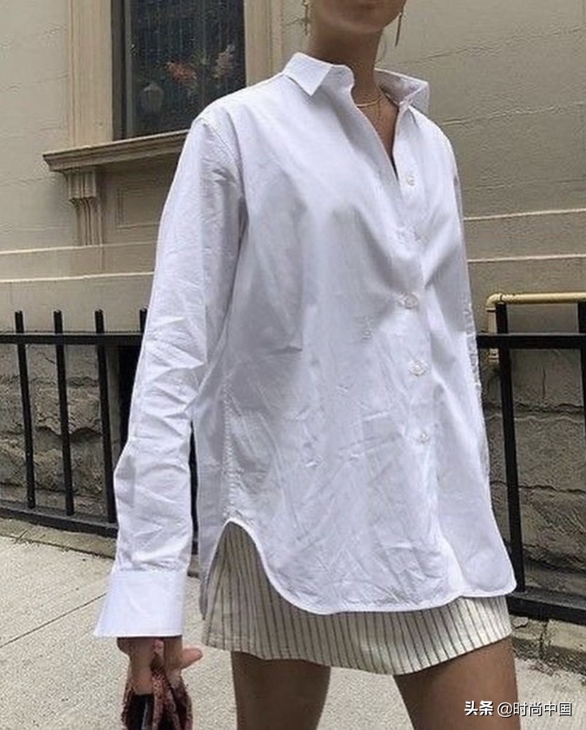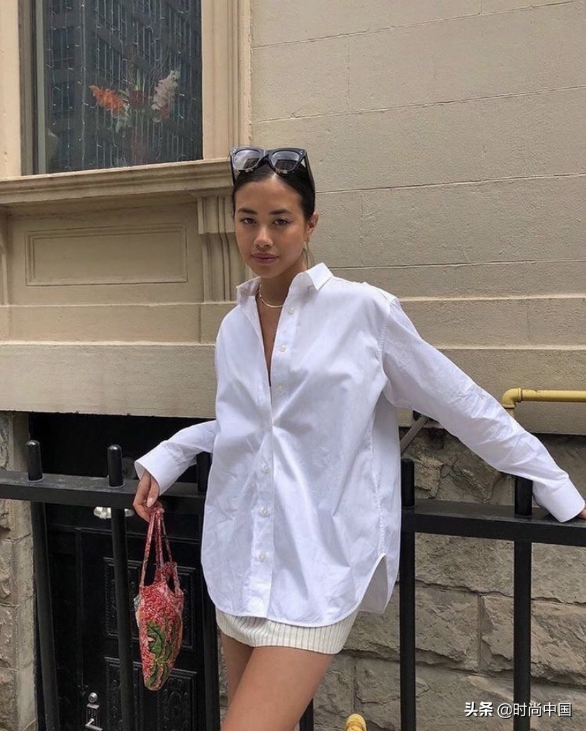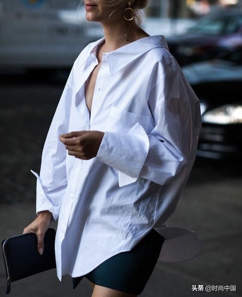 现在流行的仍然是宽大随意的那一款,那是你心底最后的放松。宽大的白衬衫可以让你随心所欲地进行穿搭。