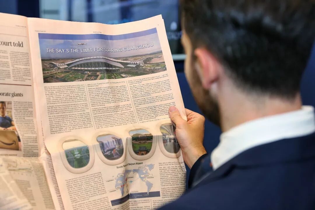 推介会上,来宾阅读当天金融时报刊登广州航空业