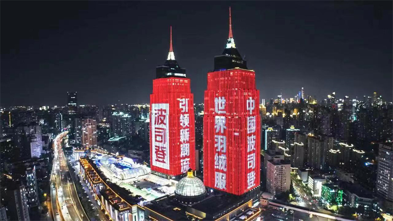 大会期间,还在上海、浙江德清两地举办炫酷的3D楼体光影秀、无人机空中秀。波司登品牌在流光溢彩中点亮城市的夜空,展示中国品牌风采,为世界品牌盛会增色。