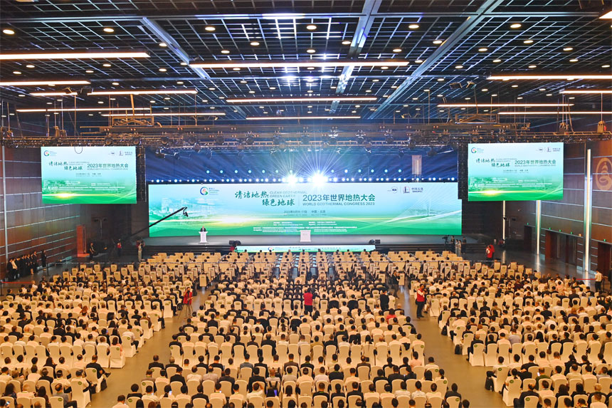 54个国家1400余名嘉宾出席盛会。大会以“清洁地热、绿色地球”为主题,聚焦全球地热领域发展热点趋势,共同分享全球地热能开发科技和创新成果,推动全球地热产业发展,守护绿色地球。冰岛总理雅各布斯多蒂尔视频致辞,国务院国资委副主任苟坪,国家能源局局长章建华,中国地质调查局局长李金发,国际地热协会主席西尔万·布洛格,2023年世界地热大会组织委员会名誉主任、中国石化董事长马永生分别致辞。北极圈大会主席、冰岛前总统格里姆松,冰岛国家能源局局长洛加多蒂尔,埃塞俄比亚矿业部国务部长普克出席会议。开幕式由中国石化总经理赵东主持。