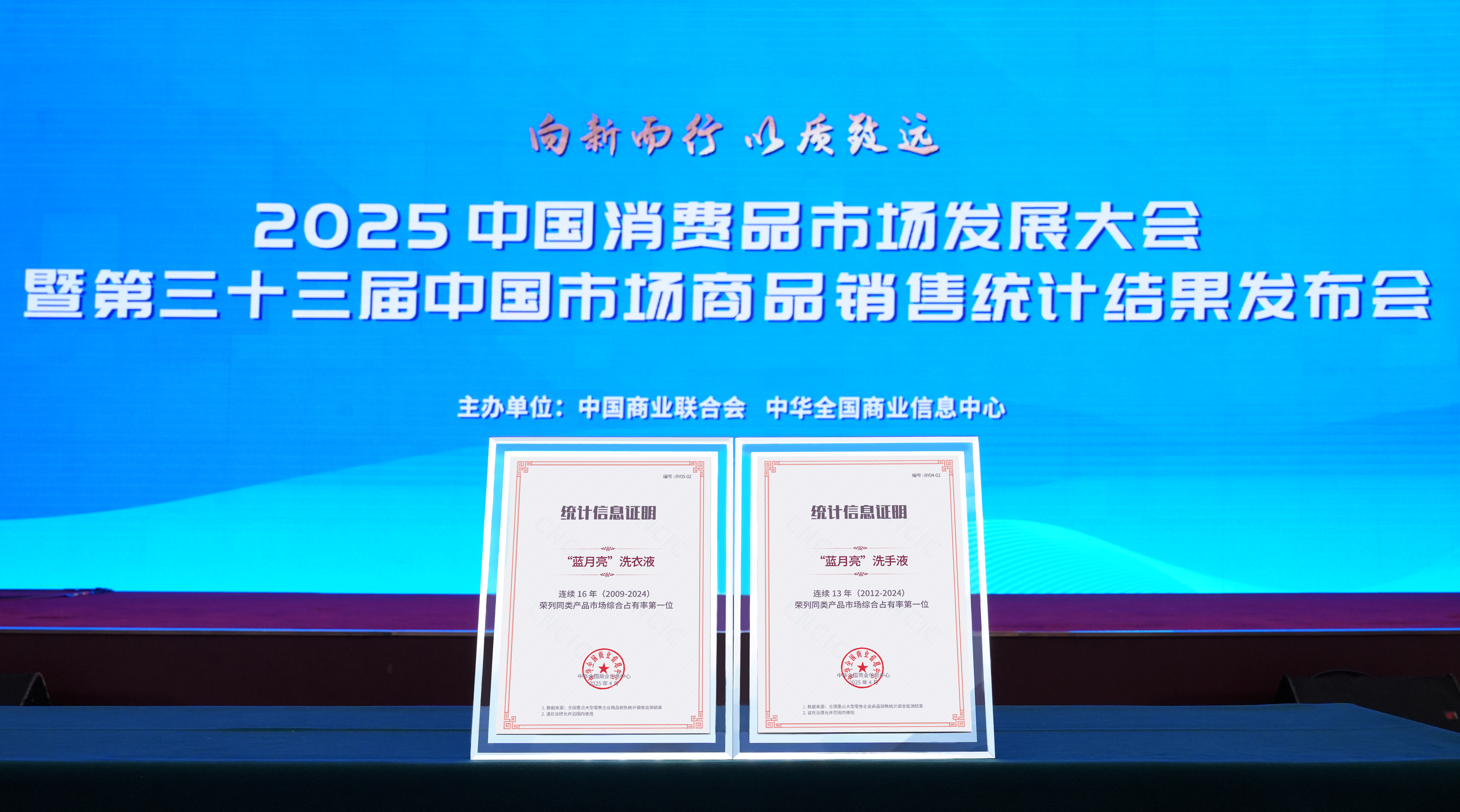 今日,中华全国商业信息中心统计的结果显示,2024年蓝月亮摘得洗衣液、洗手液同类产品市场综合占有率第一。至此,蓝月亮在此两大品类中,已分别蝉联16年和13年冠军。