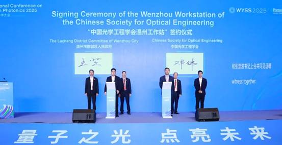 会上,中国光学工程学会温州工作站正式签约成立。据悉,中国光学工程学会是由光学界顶尖院士共同发起成立的权威组织,自2014年创立以来始终屹立于我国光学工程领域潮头。如今,它将创新的触角延伸至温州创新沃土,架起一座连接国家战略、扎根民营经济沃土的“智慧之桥”,将以顶尖学术动能驱动温州从“制造重镇”向“智造高地”的跨越式发展。