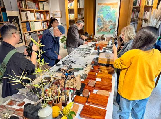 行程中,希腊艺术家们鲜少用习惯的油画表达。更多的时间,他们和中国艺术家们探讨水墨技法。他们在温州沧河巷团购中国绘画材料,大量采购纸绢、毛笔、墨锭、砚台等。