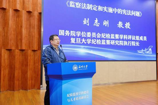 国务院学位委员会纪检监察学科评议组成员、复旦大学刘志刚教授作主旨报告