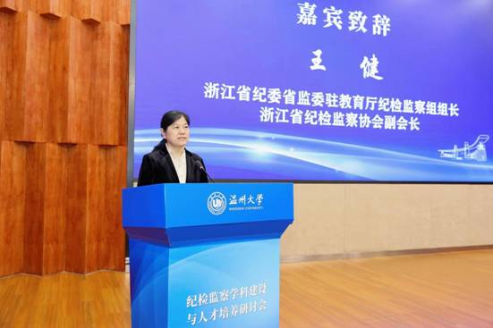 浙江省教育厅党组成员、省纪委监委驻省教育厅纪检监察组组长、省纪检监察协会副会长王健致辞