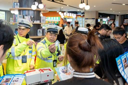 在位于学生社区商业街举办的“安全教育嘉年华”将活动推向高潮。活动现场,“消防器材拼图赛”“急救绳结挑战赛”“安全标识连连看”等趣味游戏吸引了大批学生参与。温州市公安局交通管理支队、龙湾区金海派出所、学校医务室联合设立宣传点,构建了“校—地—警—医”协同的“社区安全共同体”生动场景。这种理论教育、专业引领与亲身体验相结合的方式,极大地提升了教育的吸引力和实效性。