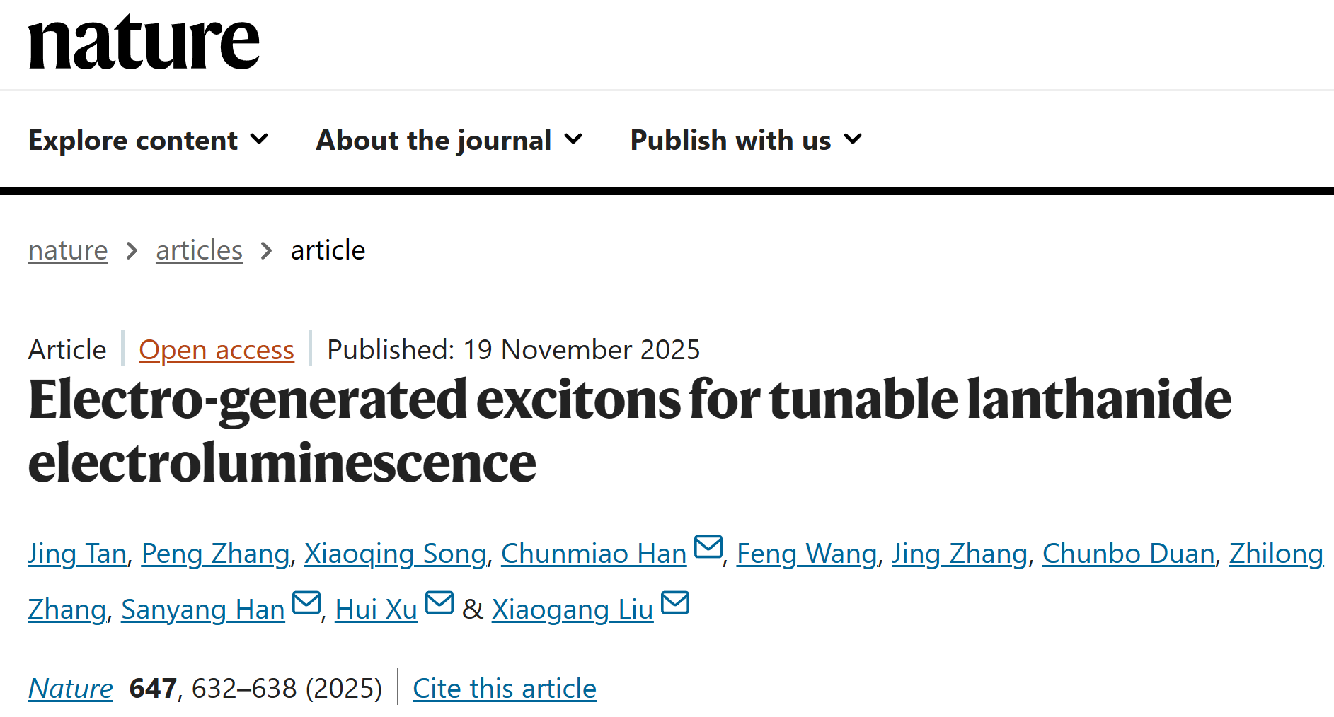 近日,黑龙江大学、清华大学和新加坡国立大学合作完成的突破性研究成果在《Nature》正式发表,成功攻克绝缘性稀土纳米晶的高效电致发光这一世界难题。该研究为实现我国稀土资源从“原料出口”向“高附加值技术输出”的战略转型提供了关键核心技术支撑。