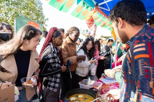 美食体验区香气弥漫,中国饺子、泰国三色椰汁糕、孟加拉国香饭等二十余国特色美食琳琅满目。中外学生们化身“文化大使”,一边分享家乡美味,一边讲述背后的饮食文化。师生们手持体验券穿梭在各个摊位之间,在味蕾的享受中增进了解。