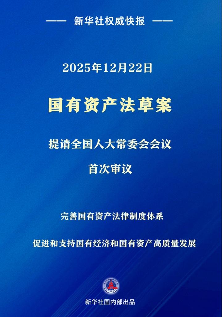 国有资产法草案12月22日提请十四届全国人大常委会第十九次会议首次审议。制定基础性、综合性的国有资产法,完善国有资产法律制度体系,对于在法治轨道上提升国有资产治理效能意义重大。