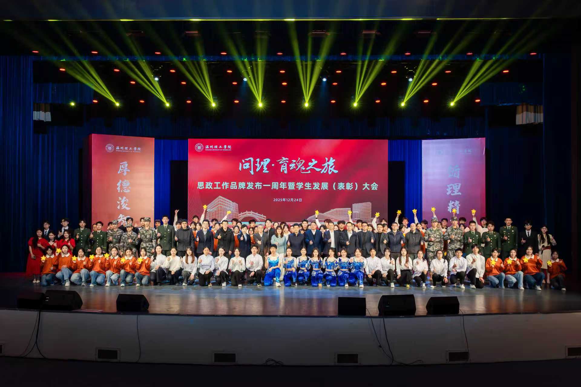星光引路,育魂润心。近日,温州理工学院“问理·育魂之旅”思政工作品牌发布一周年暨学生发展(表彰)大会举行。一年来,该品牌聚焦破解高校思政教育“碎片化”“协同弱”“实效低”等现实难题,以“课堂+”“实践+”“场域+”“网络+”“科技+”五维融合的创新路径,系统构建了具有温州特色与理工特质的思政育人新范式,培育出一批批德才兼备的时代新人,充分展现了思政工作赋能学生全面发展的生动图景。