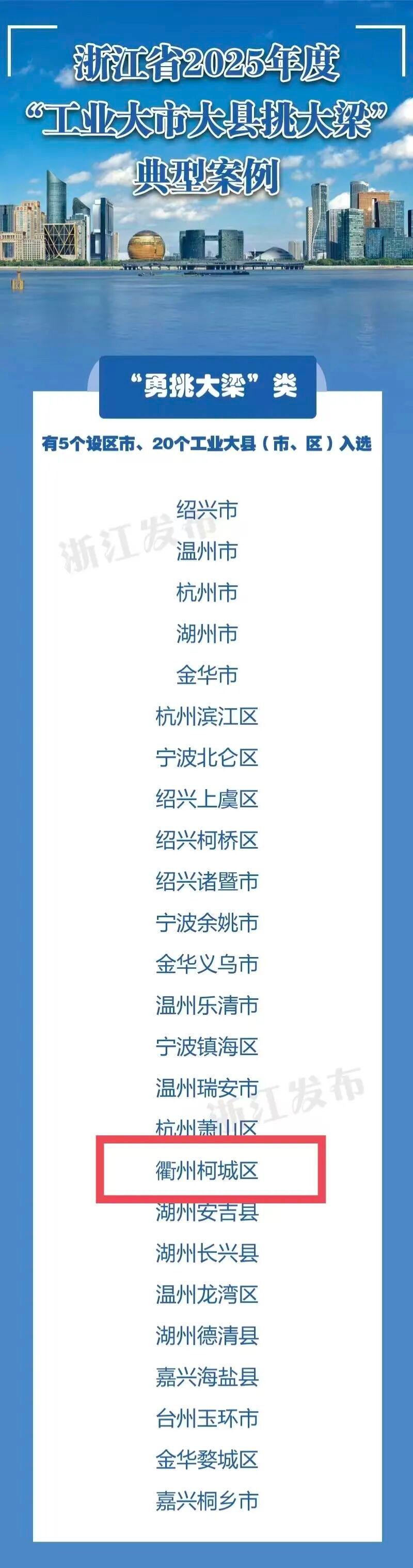 柯城区上榜浙江省2025年度“工业大市大县挑大梁”典型案例