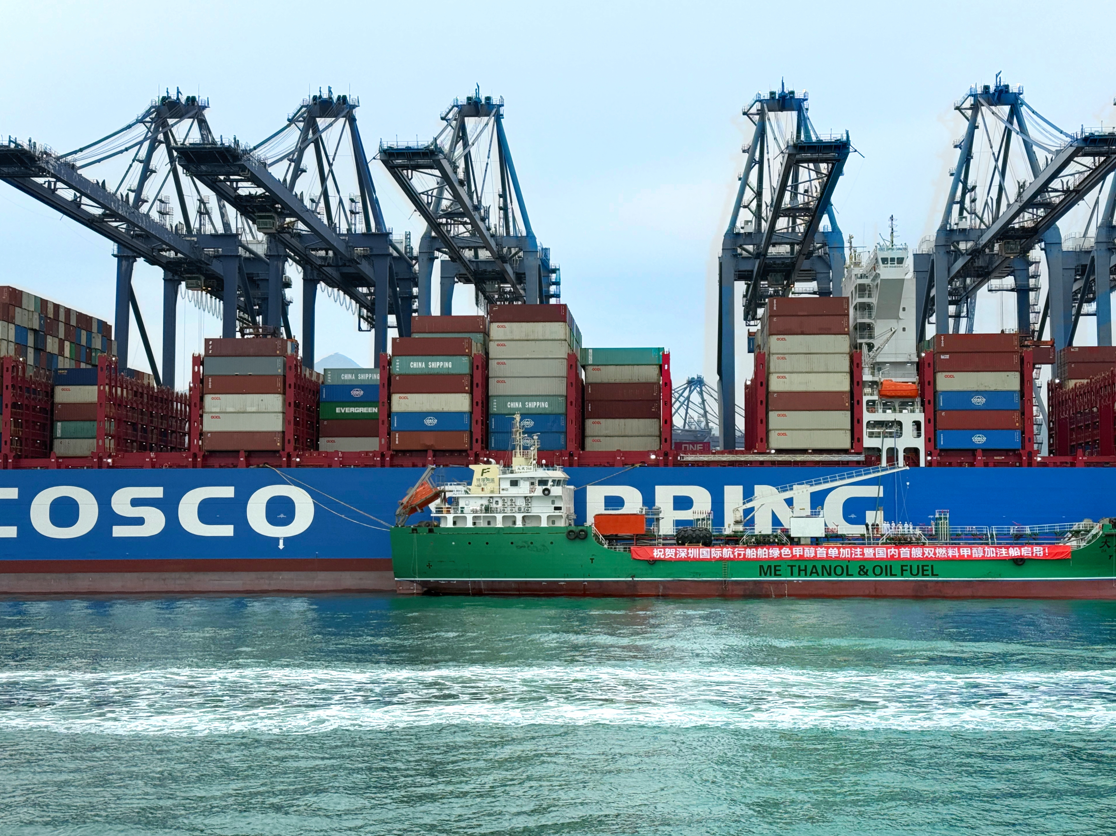 近日,我国自主建造的首艘双燃料甲醇加注船——“大庆268”轮在深圳盐田港码头正式启用,为“中远海运康乃馨”轮加注200吨绿色甲醇,将为粤港澳大湾区打造世界级绿色航运枢纽奠定坚实基础。