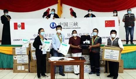 ▲ 圣加旺项目代表三峡集团向秘鲁社区捐赠抗疫物资
