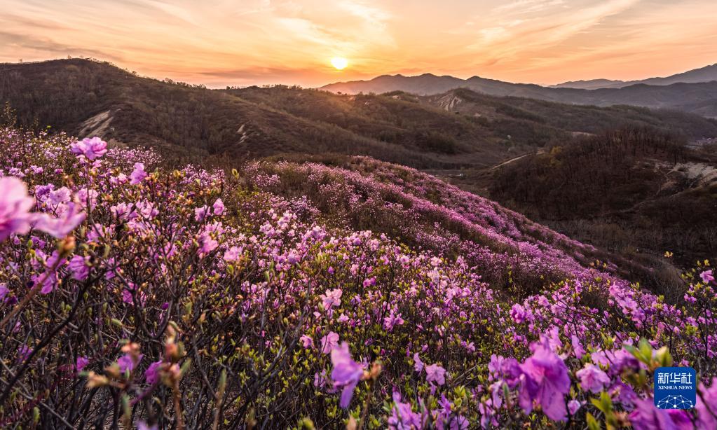 近日,在辽宁省岫岩满族自治县黄岭村映山红景区,近千亩映山红竞相开放。