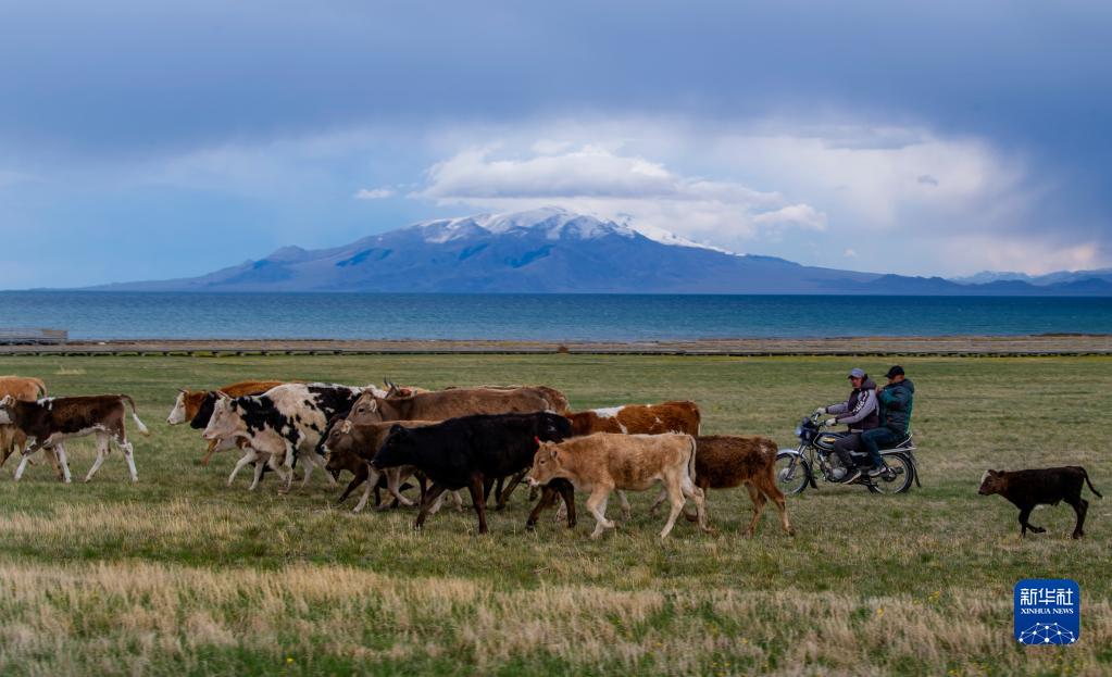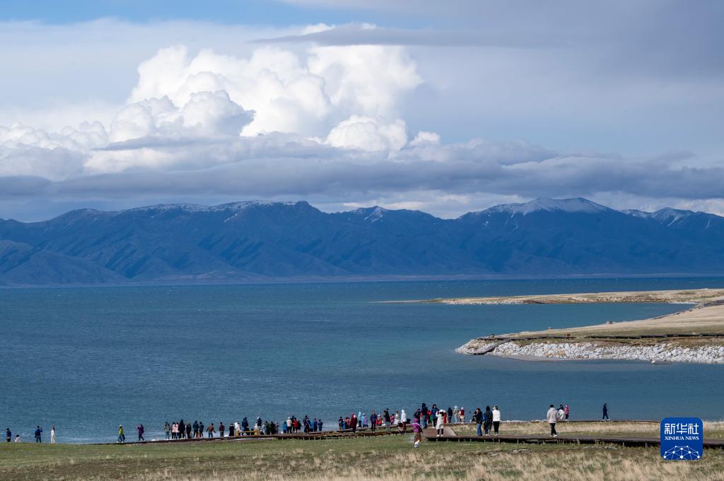 初夏的新疆赛里木湖,水天一色,湖畔野花绽放,吸引不少游人前来游览观光。赛里木湖是新疆海拔最高、面积最大的高山湖泊,四季景色宜人、美不胜收。