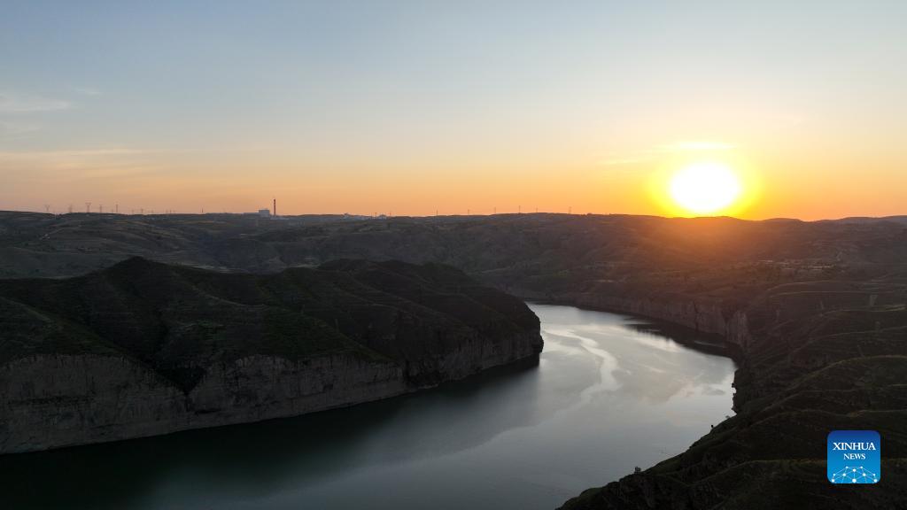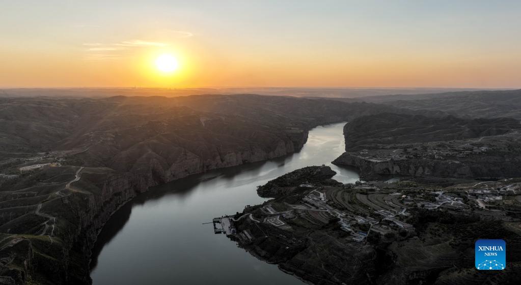 夏日时节,蒙晋陕黄河大峡谷在落日余晖的映照下壮美如画。