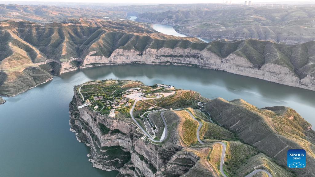 这是6月20日在内蒙古鄂尔多斯市准格尔旗拍摄的黄河大峡谷(无人机全景照片)。