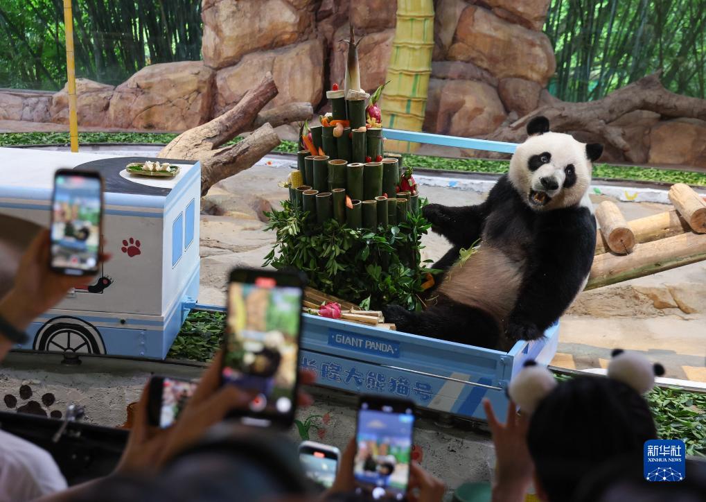 当日,全球唯一的三胞胎大熊猫“萌萌”“帅帅”“酷酷”迎来九周岁生日,三胞胎于2014年7月29日出生于广州长隆野生动物世界华南大熊猫繁育基地。