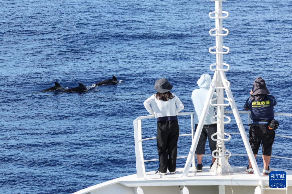 近日,“心系‘海棠’海洋生物多样性”考察团队在海南岛东部海域目击到大量鲸豚类动物,包括短肢领航鲸、弗氏海豚、糙齿海豚等。