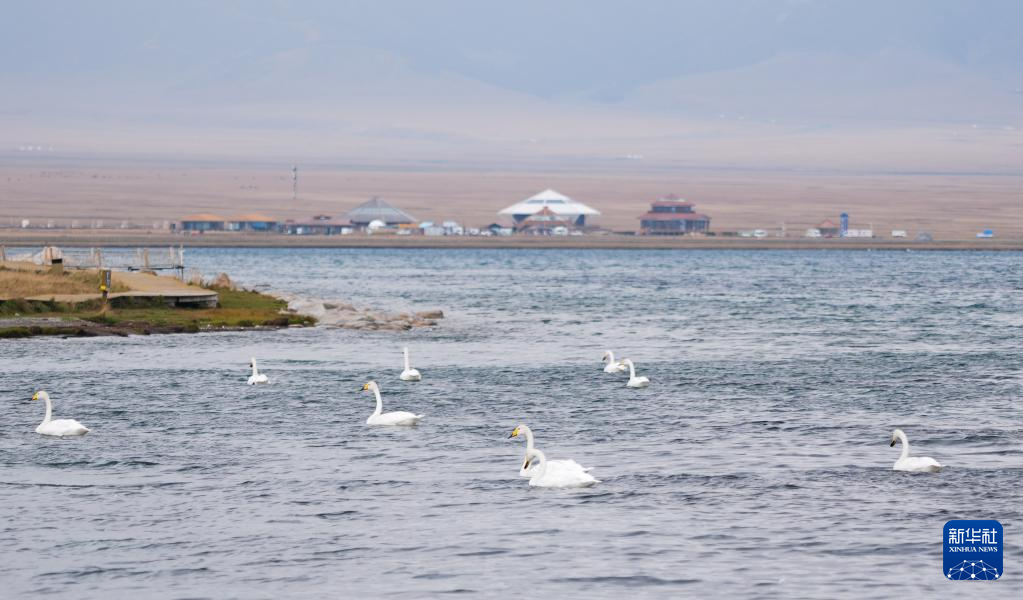 9月10日,天鹅在赛里木湖游弋。