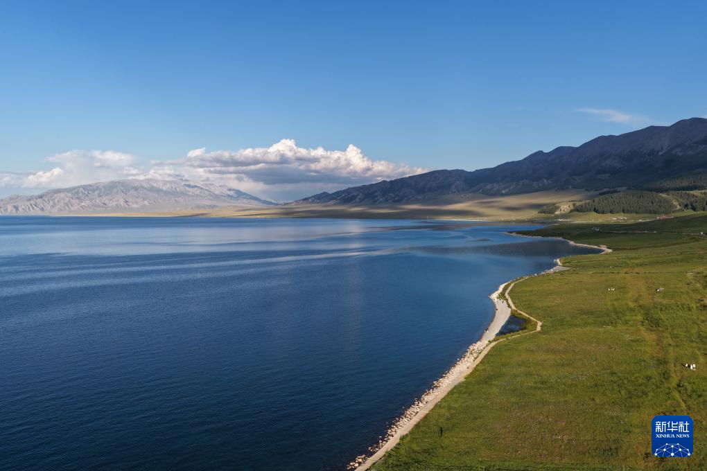 赛里木湖景致(无人机照片,7月8日摄)。