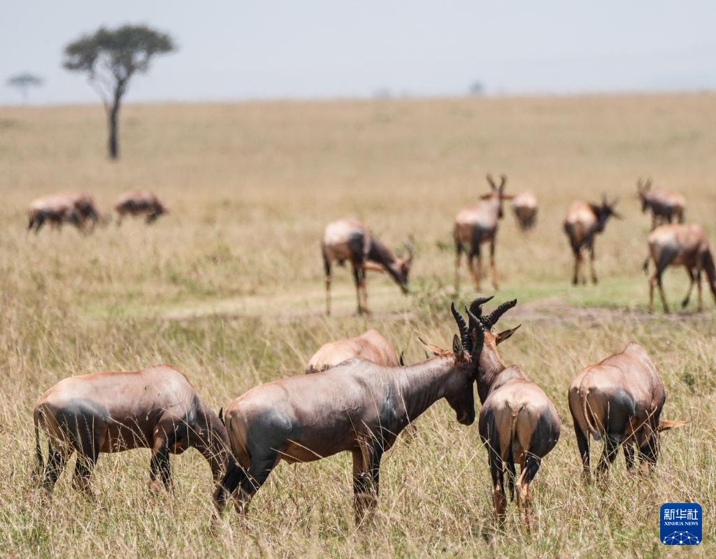 这是9月6日在肯尼亚马赛马拉国家保护区拍摄的转角牛羚。