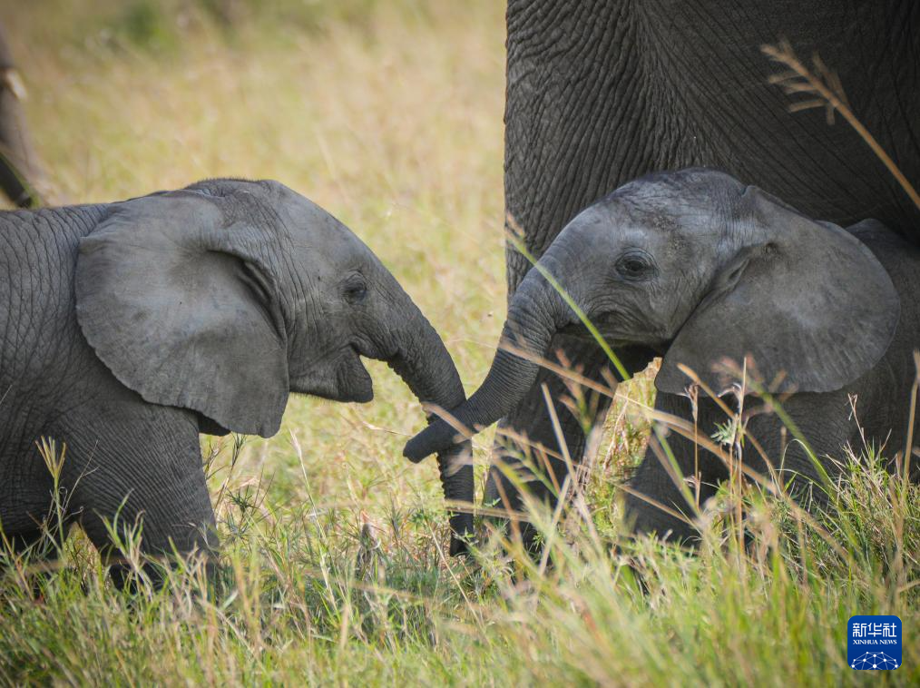 9月7日,在肯尼亚马赛马拉国家保护区,两头小象在嬉戏。