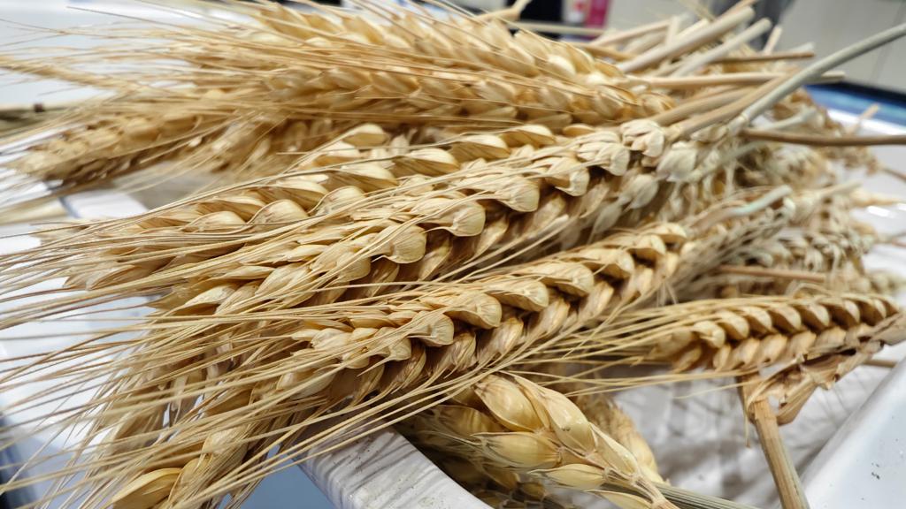 中科合肥智能育种加速器创新研究院里的麦穗。新华社记者陈诺摄