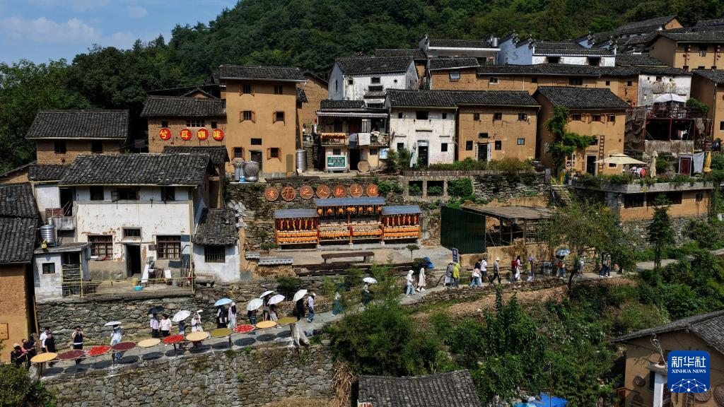 阳产村山多地少,以种植山核桃、板栗、茶叶等为主。过去,村庄无人问津,村民多外出打工,成了“空心村”。近年来,当地政府依托土楼和“晒秋”特色,大力发展乡村旅游业。村民们当向导、开民宿、办起农家乐,吃上了旅游饭。