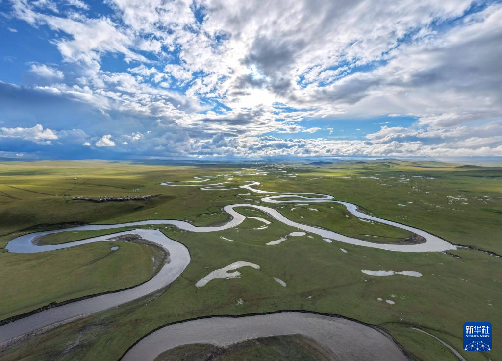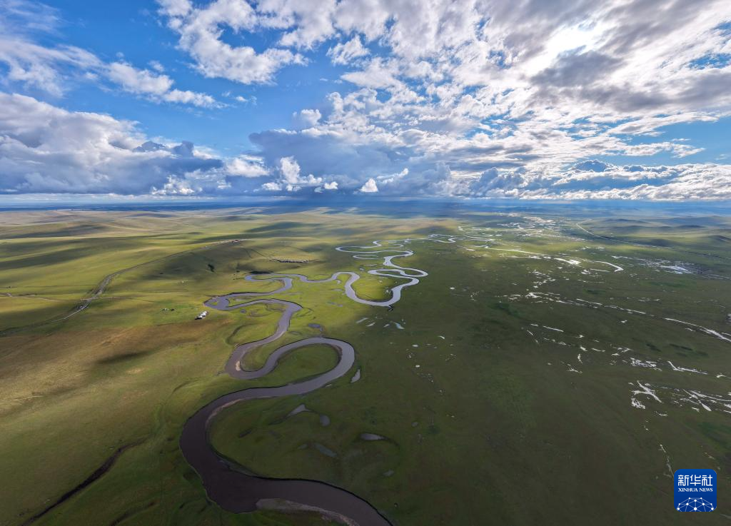 9月14日拍摄的内蒙古呼伦贝尔市陈巴尔虎旗草原上的莫尔格勒河(无人机照片)。
