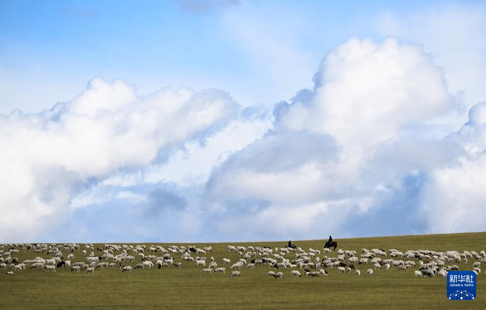 9月14日,牧民在内蒙古呼伦贝尔市陈巴尔虎旗草原上放牧。