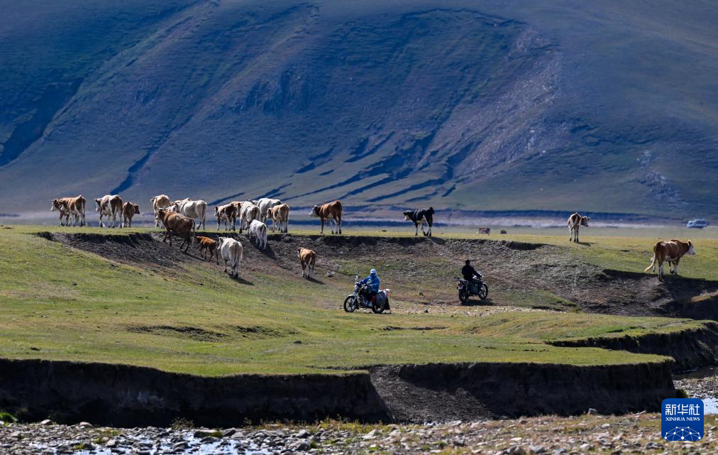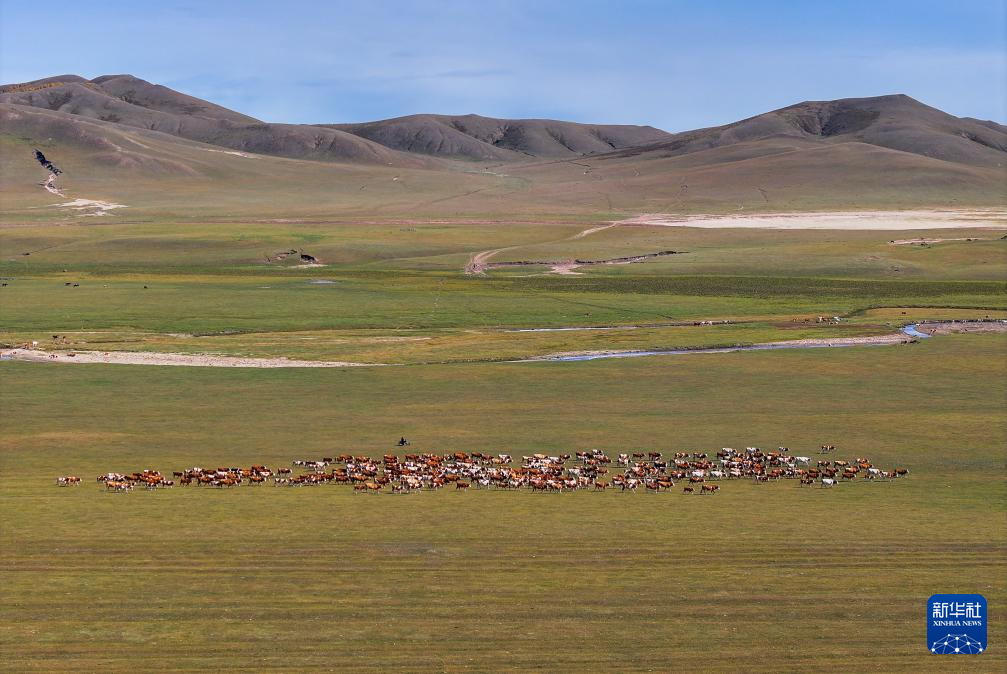 9月20日,都楞宝力高和邻居们赶着牛群,踏上转场归途(无人机照片)。