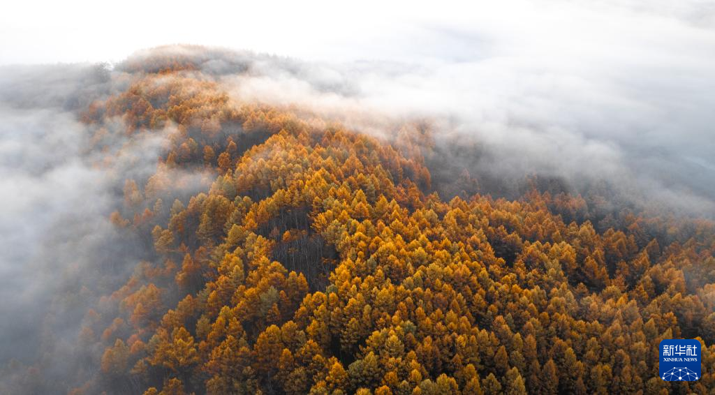 9月29日拍摄的内蒙古阿尔山国家森林公园景色(无人机照片)。