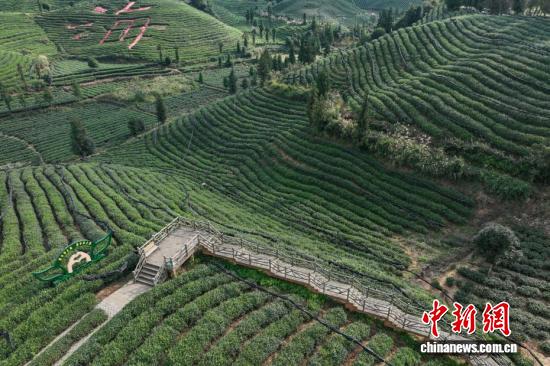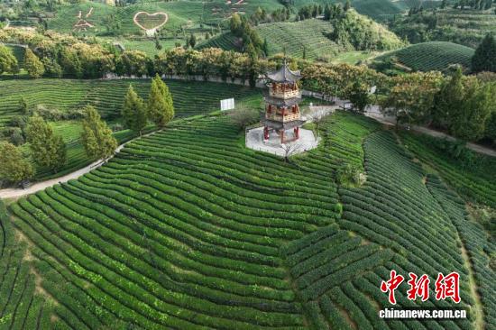 10月12日,航拍贵州省遵义市凤冈县何坝街道的“茶海”秋意盎然、美不胜收。记者 瞿宏伦 摄