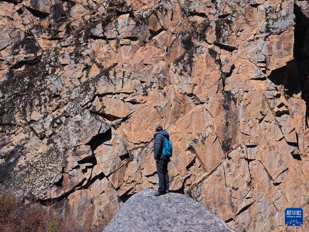 10月21日,陈雪松实地调查海子山老林沟拉托扎岩画。