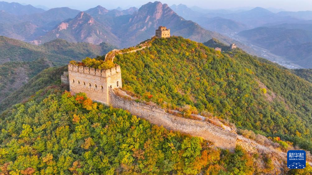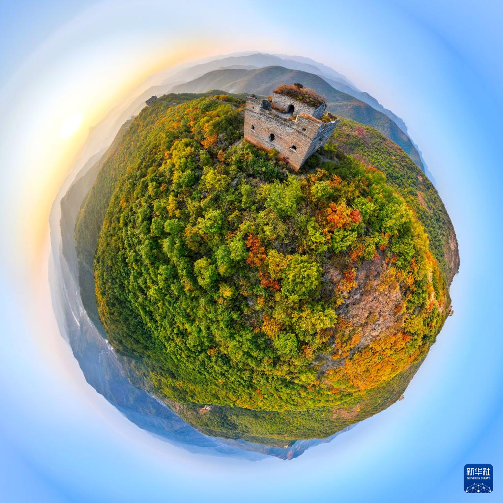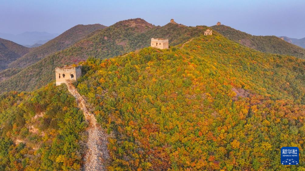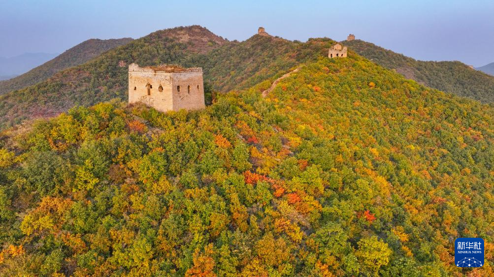 深秋时节,位于河北秦皇岛的董家口长城沿线层林尽染,呈现壮观景色。